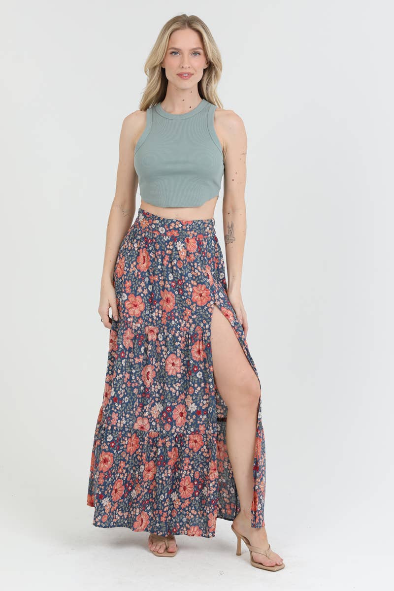 FLORAL PRINT MAXI SKIRT WITH HIGH SLIT